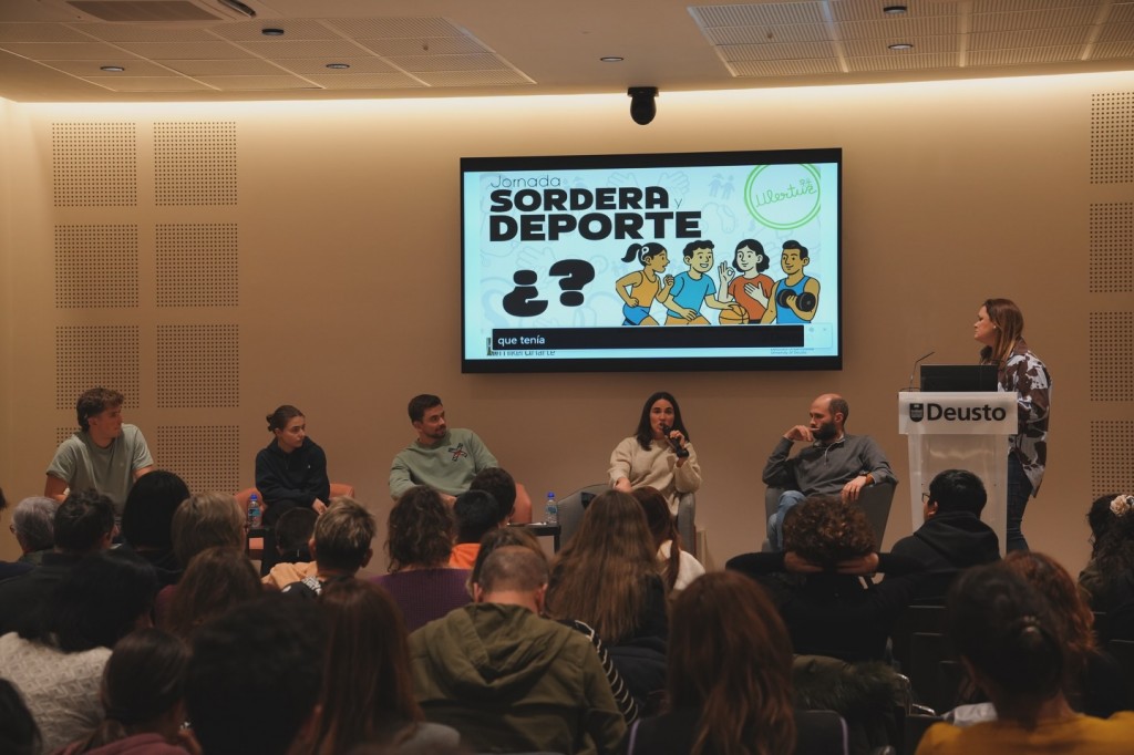 El 30 de enero se celebró en la Universidad de Deusto en la sala Barandiarán, una jornada sobre: “ ACCESIBILIDAD EN EL DEPORTE” con jóvenes deportistas sordos que expusieron las dificultades que tienen cuando practican algún deporte y las posibles recomendaciones para mejorar el entendimiento entre árbitros y los deportistas.